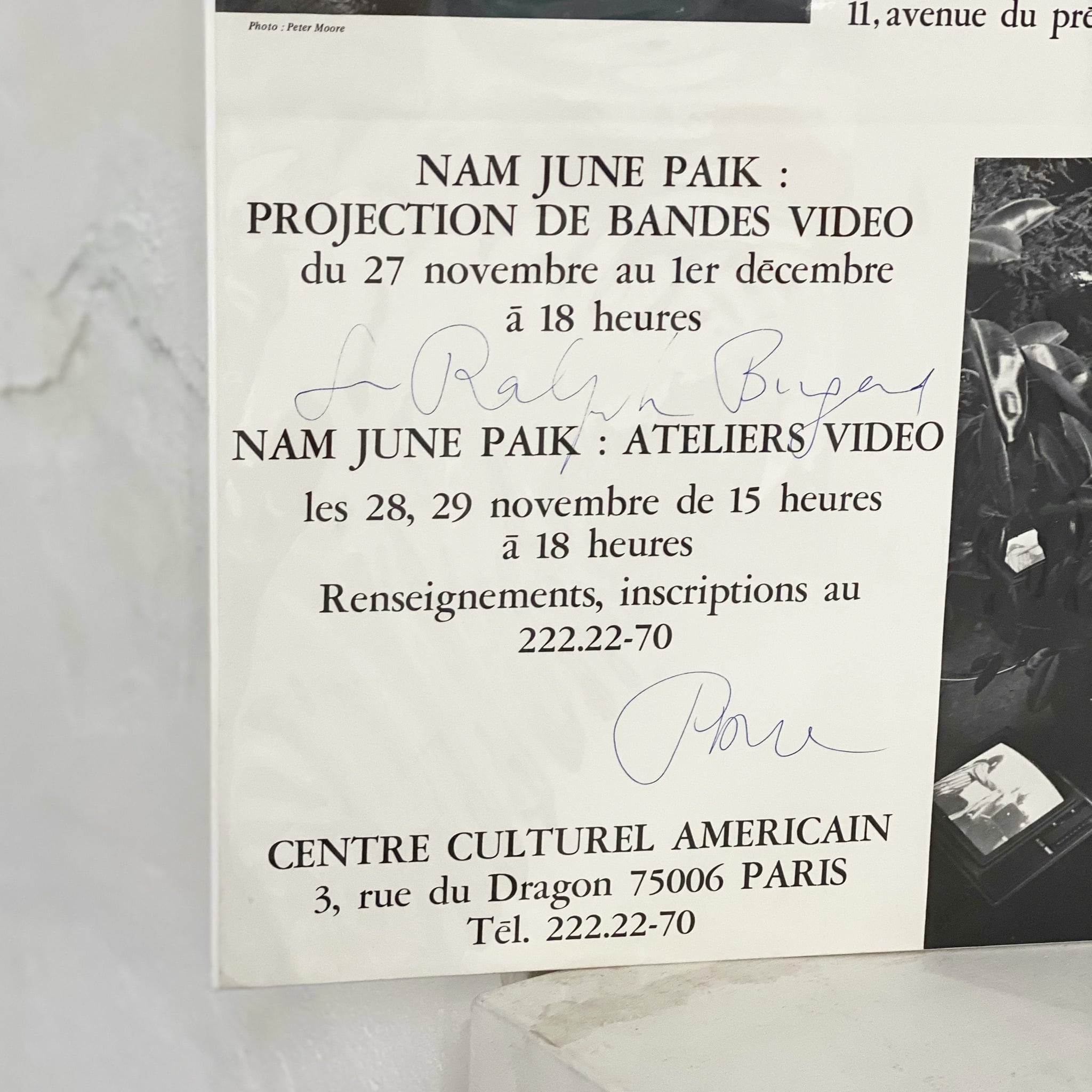 Description : パリのアメリカン文化センターで開催された展覧会ポスター。青いボールペンでパイクのサインと個人名が書き込まれていますが、2枚在庫しているポスターはいずれも違う人物の名前です。展覧会に協力した人へのギフトとしてサインを入れた後、なんらかの理由で残ってしまったようです。珍品です。